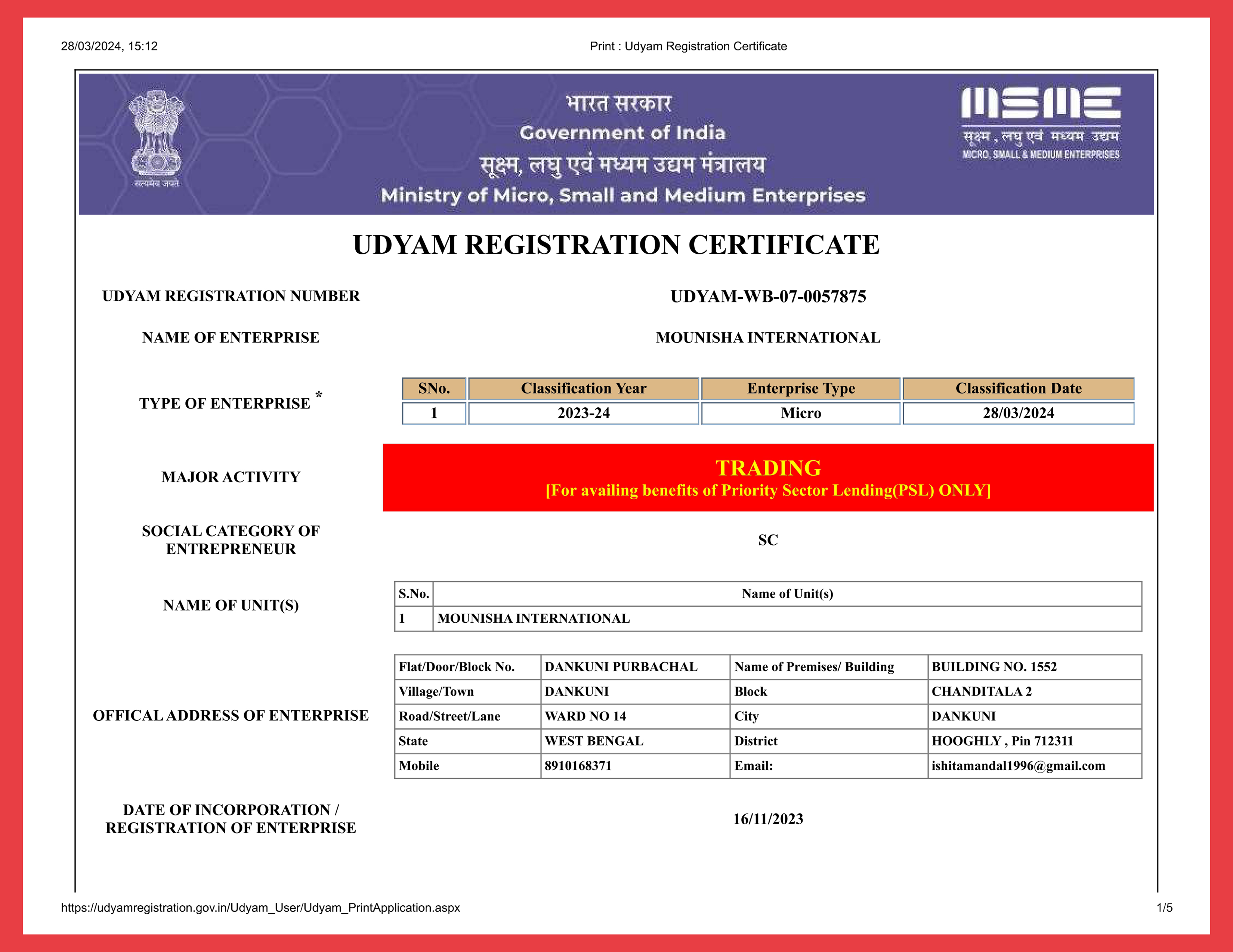 holding all key certifications including Trade License, GST, IEC Code, MSME, RCMC, and Trademark. These approvals ensure legal compliance, export eligibility, and credibility in both domestic and international markets.
